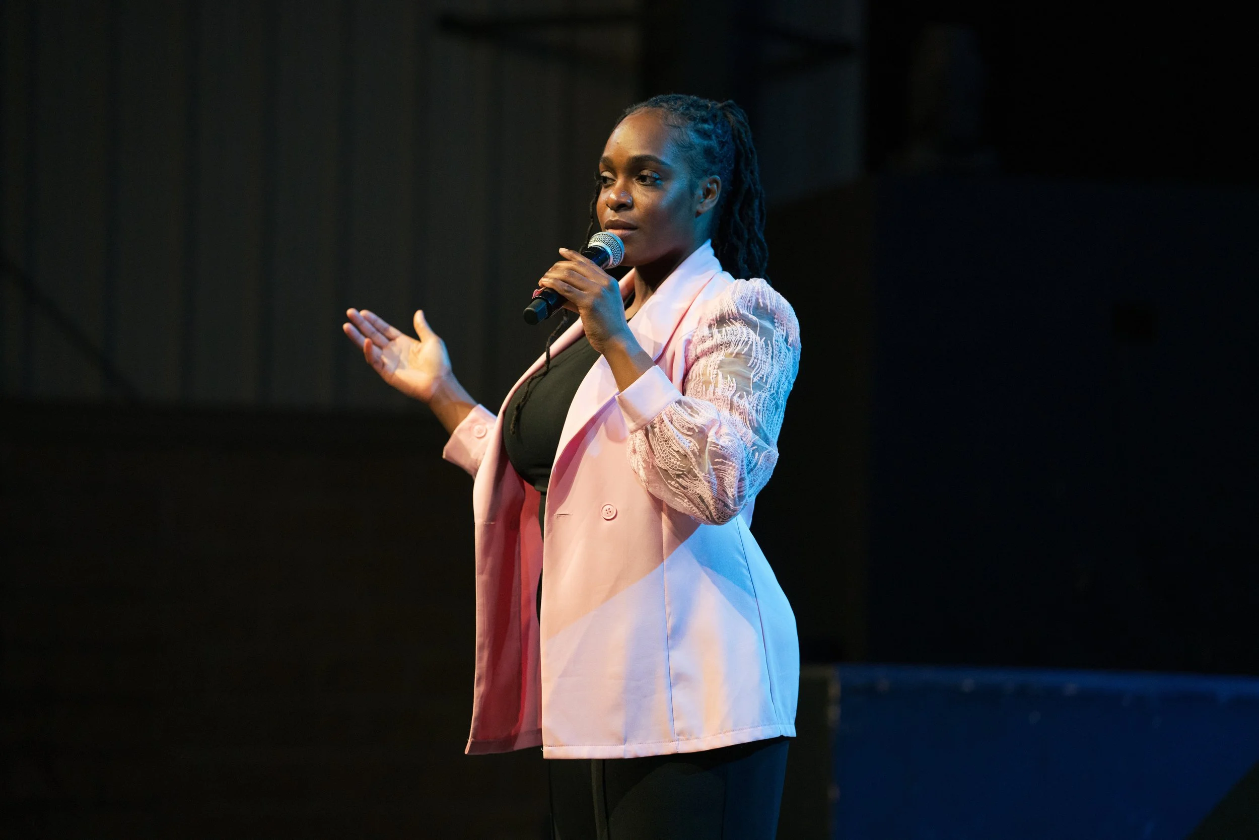 Pastor Danielle Placide preaching during the main worship experience.